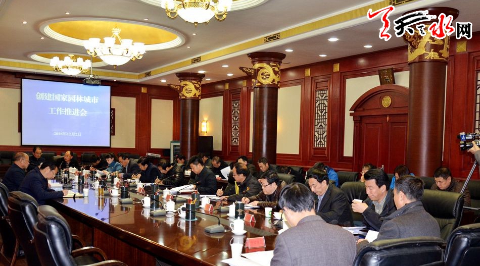 天天天水网讯 据天水市政府门户网消息 12月2日,天水市副市长何东主持召开创建国家园林城市工作推进会,专题研究创建国家园林城市有关事宜,安排部署创建工作任务。秦州、麦积两区政府及市直有关部门负责人参加会议。