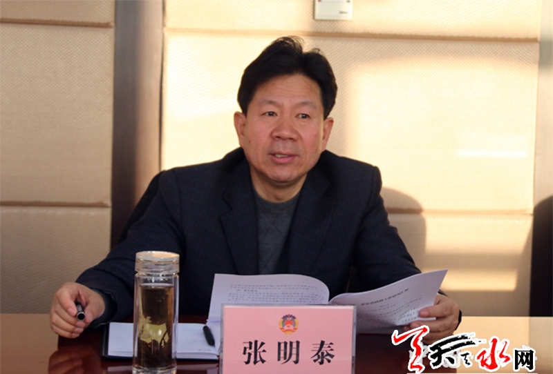 天天天水网讯【记者冯丽娟】12月5日,天水市政协主席张明泰到秦安县,就县政协工作情况进行调研。张明泰强调,要深入学习贯彻党的十八届六中全会精神,始终坚持人民政协的正确政治方向,增强“四个意识”,把全面从严治党的要求落实到政协工作的各个方面,要进一步落实好省、市委政协工作会议精神,推动县域政协工作不断创新发展。