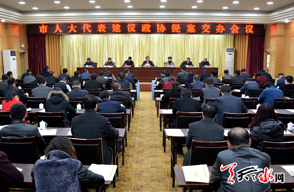 天天天水网讯【记者 胡丽霞】12月7日,我市召开“两会”建议提案交办会,贯彻落实“两会”精神,通报市七届人大一次会议和市政协七届一次会议建议提案搜集、整理、立案情况,集中交办市市七届人大一次会议和市政协七届一次会议代表委员提出的建议和提案。