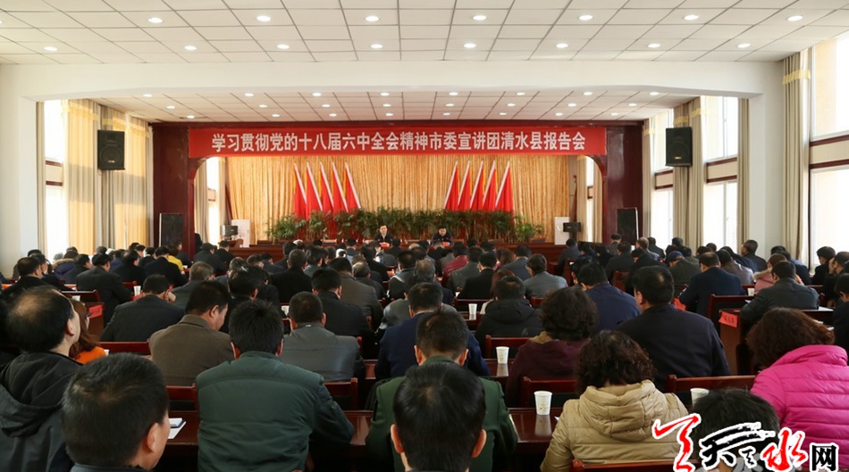 天天天水网讯【记者马哲】12月6日,市委宣讲团成员、市委常委、常务副市长赵卫东赴清水县宣讲党的十八届六中全会精神。