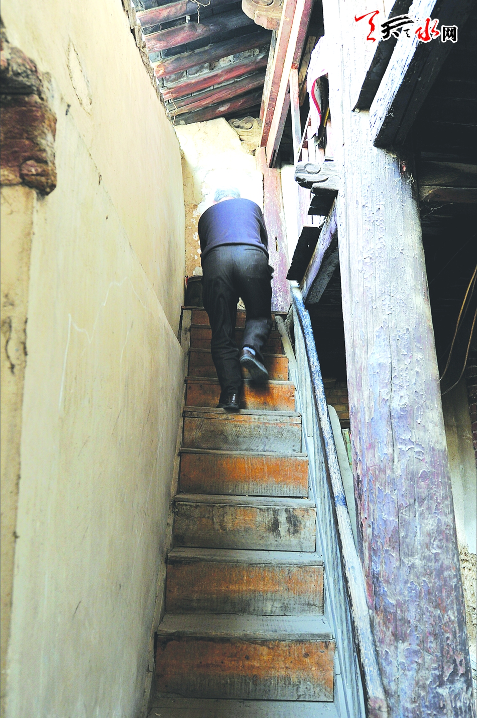 王宏、田桂花夫妇的居所,是一座建于明末清初的绣楼,全木制榫卯结构,构造完整,属于“公房”。今年60多岁的夫妻俩,1997年因房屋拆迁,由秦州区北关忠诚巷搬至绣楼,一住就是20个年头。王宏说,绣楼曾是皮鞋厂的车间。再之前,也许是哪户大户人家的姑娘待嫁时的闺房。