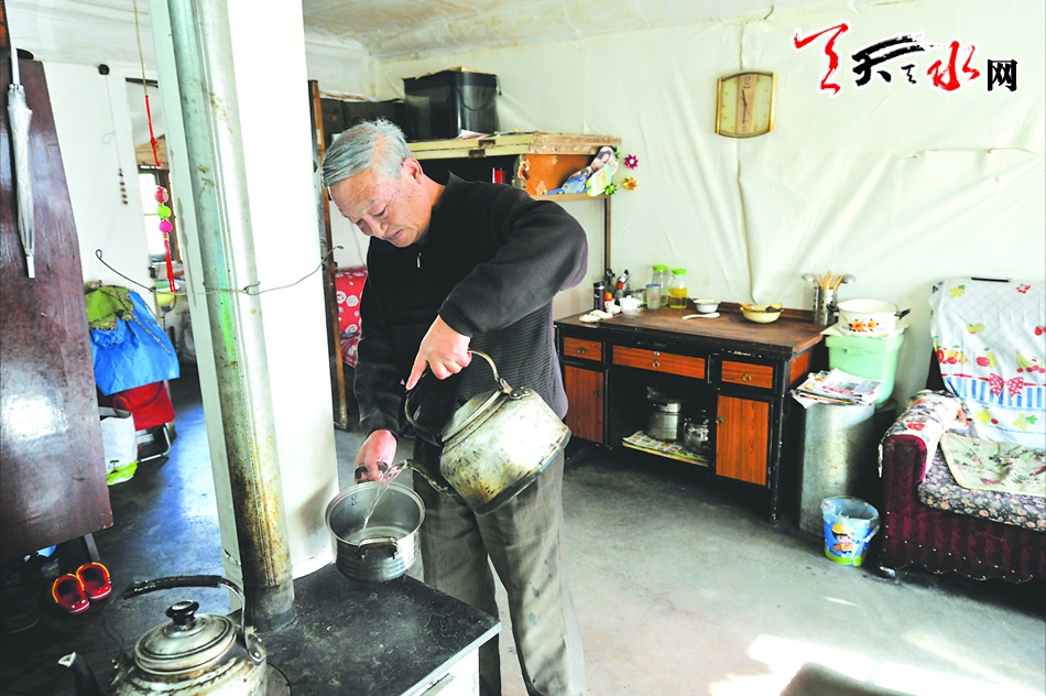 12月6日上午,美国NBA职业篮球联赛湖人队和凯尔特人队的比赛正在进行。天水市秦州区自由路57号院一幢木制小楼里,住户王宏坐在火炉旁看着比赛,老伴田桂花在狭窄的厨房择菜做饭。