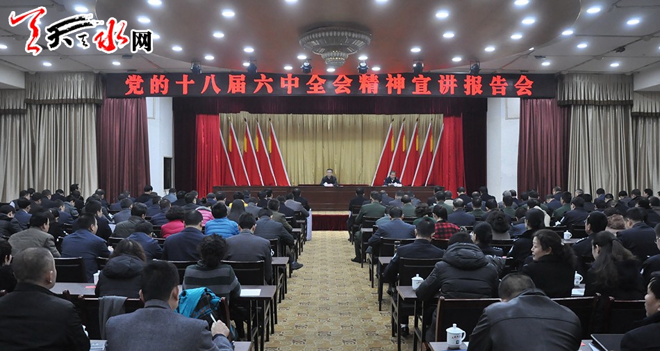 天天天水网讯【记者李欣桐】12月13日下午,天水市委宣讲团成员,市委常委、秘书长、政法委书记蒋晓强为办公部门和政法系统党员干部宣讲党的十八届六中全会精神。