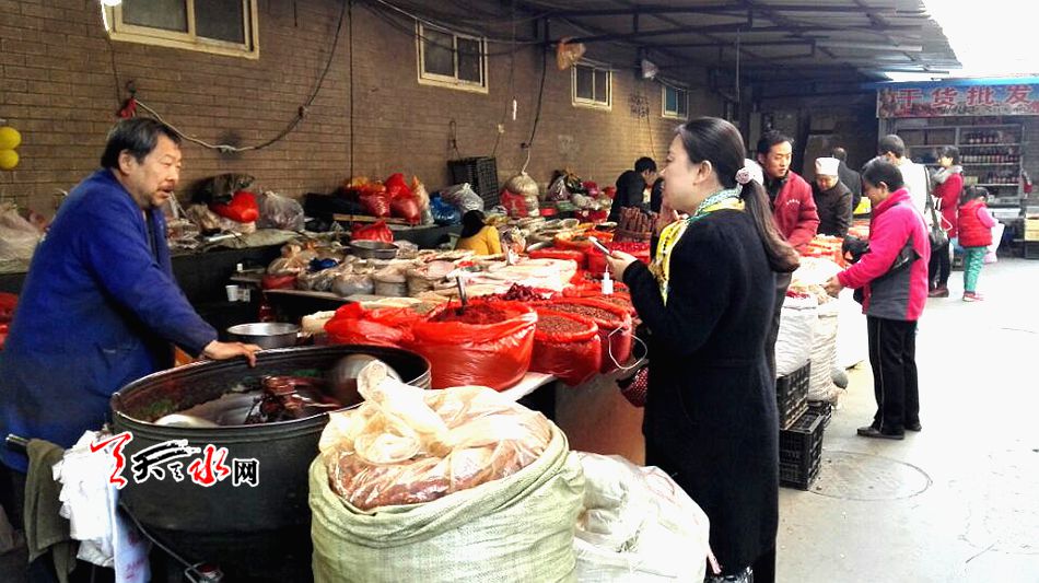 12月22日,年关将近,冷清的天水商贸市场迎来了消费的“黄金期”。在秦州区箭场里调味品经销市场,选购调味品的市民熙来攘往,沸反盈天的喧闹声此起彼伏。