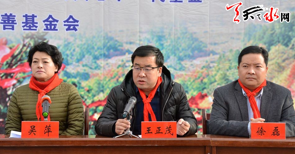 王正茂在致辞中代表天水市委、市政府向教育基地的挂牌成立表示热烈的祝贺!向为教育基地的成立付出辛勤劳动的各位领导和同志们表示衷心的感谢!他说,中国关心下一代教育示范基地在麦积区甘泉中学挂牌,充分体现了中国关工委、省关工委对我市关心下一代工作的亲切关怀和大力支持。我们将以这次挂牌为契机,按照中国关工委和省关工委的要求,充分发挥基地作用,策划开展各类学习教育活动,努力打造全省乃至全国一流的教育示范基地。市、县关工委要进一步创新载体、搭建平台,竭诚为青少年做好事、办实事、解难事,推动关心下一代工作再上新台阶,以优异的成绩回报中国关工委和省关工委及社会各界的期望和厚爱。同时,也希望同学们通过这次挂牌活动,进一步坚定理想信念,刻苦学习,做一个品德高尚、自强不息、志存高远的人,努力尽早成才,回报社会,建设美丽家乡。