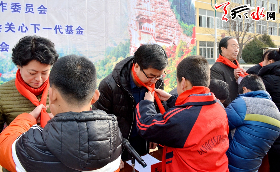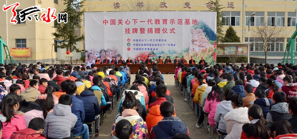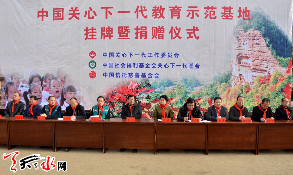 天天天水网讯【记者杨璟】12月26日上午,中国关心下一代教育示范基地挂牌暨捐赠仪式在麦积区甘泉中学举行,这是继庆阳市华池县上里塬中心小学、定西市漳县武阳西街小学之后,全省第三个教育示范基地,也是全国成立的第二十六个教育示范基地。