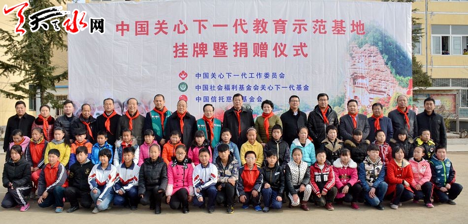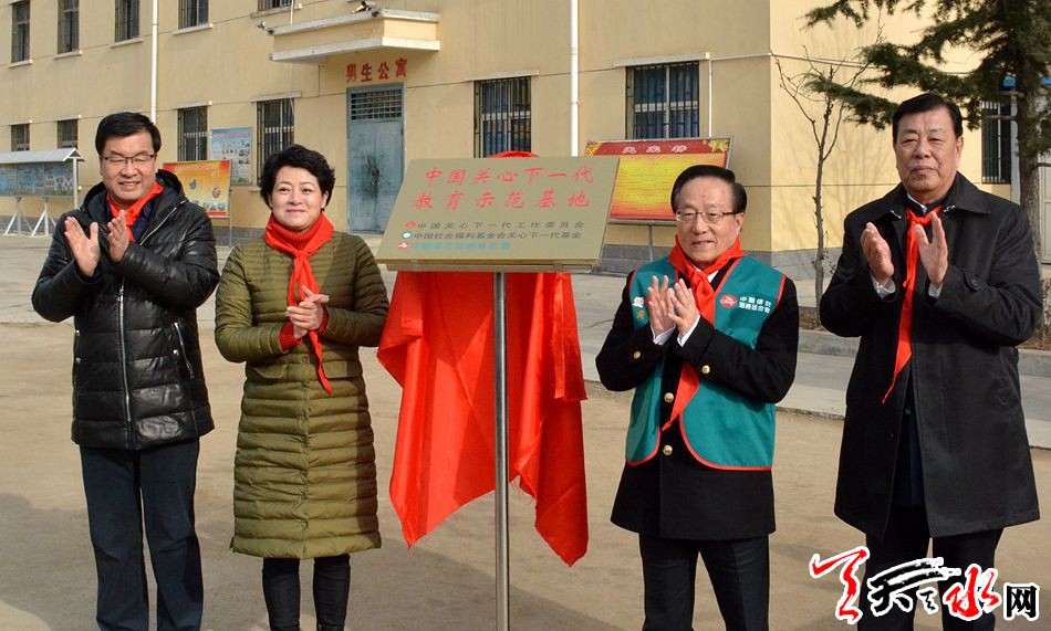 中国关工委常务副主任、中国社会福利基金会关心下一代基金理事长武韬,财团法人中国信托慈善基金会董事黄志宜,甘肃省委老干部局副局长、省关工委副主任吴萍,天水市委常委、组织部长王正茂为中国关心下一代教育示范基地揭牌。 天水市关工委主任李世荣主持挂牌仪式。