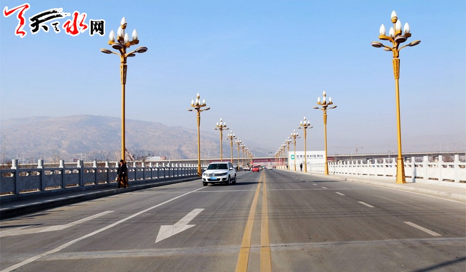 葫芦河大桥改造工程西接成纪大道西段、东接成纪大道东段,桥梁全长360米、宽15米,概算总投资544.1万元。改造内容为栏杆采用黄冈岩、人行道采用花岗岩、桥面泡洗铺油、路灯更换等。工程于2016年9月15日开工建设,目前,全面完成栏杆更换、路面面层铺装等工程,同时投资61万元在桥面安装路灯22套。
