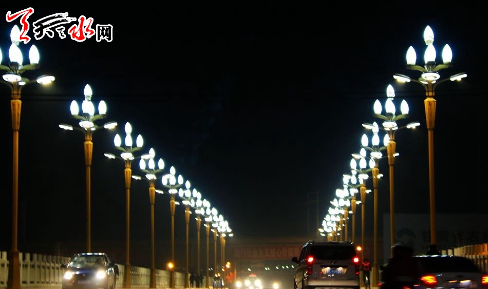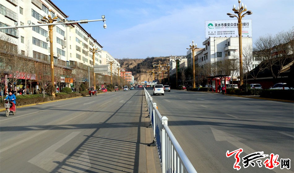 天天天水网讯【通讯员徐军虎】近日,记者走在改造升级后的成纪大道看到,宽阔整洁的路面焕然一新,造型典雅的路灯分列大道两旁,别具风格的公交车站透着古色古香的文化气息,摆放整齐的垃圾箱依次排列……每当华灯初上,百余盏路灯营造出迷人的景色,整条大道变得灯光璀璨,为秦安县城增添一道靓丽的风景。