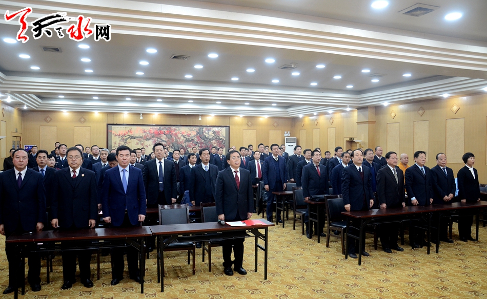 ▲天水市七届人大常委会代表资格审查委员会组成人员进行宣誓