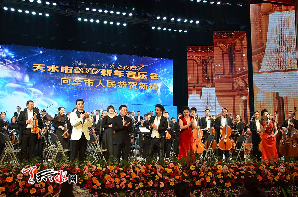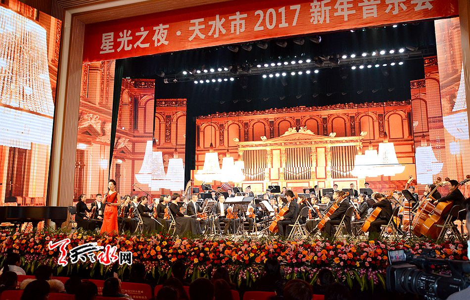 天天天水网讯【记者张文都】这是一场新年的音乐之旅,这是一次心灵交汇的激动时刻,这是一场美妙的视听盛宴!12月28日夜,由天水市文化和旅游局主办、天水星光房地产开发有限公司独家冠名的“星光之夜——2017天水市新年音乐会”在天水市秦州大剧院盛情上演。