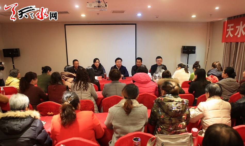 天天天水网讯 据天水市政府门户网消息 12月28日上午,天水市委常委、副市长李晓东来到天水市陇原巧手骨干训练营,看望全体参训学员并发表讲话。市妇联副主席郭湘、市政府妇儿工委办主任张亚龙、天水66号文化创意园董事长刘晓武陪同看望。