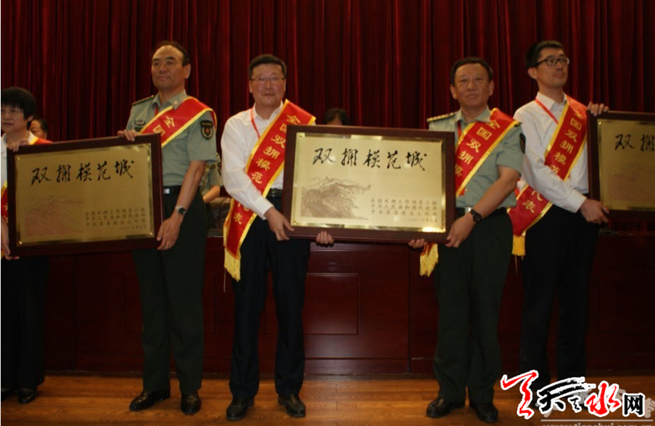 2016年7月29日,全国双拥模范城(县)命名暨双拥模范单位和个人表彰大会在北京召开,天水市被全国双拥工作领导小组、国家民政部、中央军委政治工作部命名为“全国双拥模范城”,这是我市连续五次获得全国双拥模范城殊荣。