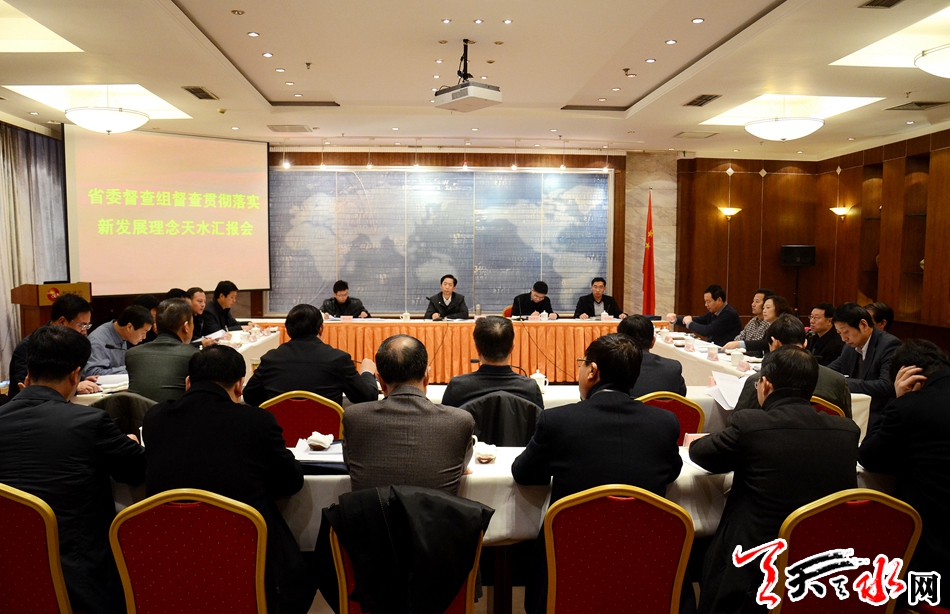在听取了我市工作情况汇报后,钟应录对我市贯彻落实“1+19”系列文件和新发展理念的举措、成效给予了充分肯定。他指出,天水市委、市政府高度重视,及时制订了符合天水发展实际的系列配套文件,确保了中央和省委关于新发展理念的精神落到实处。钟应录要求,要进一步加大工作力度,加强与省上相关部门的沟通协调,切实做好与各县区的对接,努力在产业转型升级、脱贫攻坚、项目建设等重点领域和关键环节取得新突破。