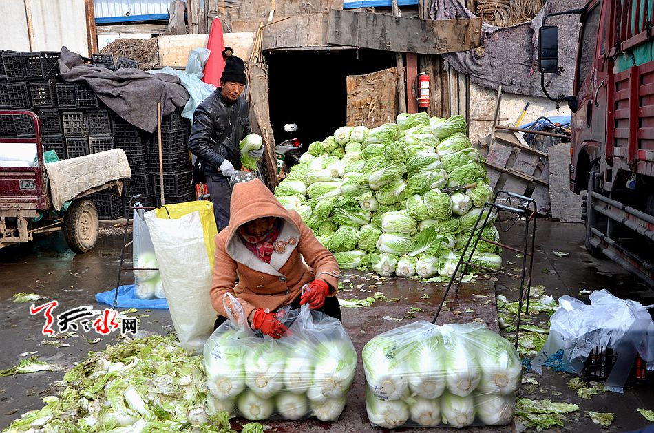 1月10日,在天水瀛池果菜批发市场,好多蔬菜摊贩看着堆积如山的蔬菜几近无人问津,一脸的错愕,“今年的行情是怎么了?往年从没有出现这样冷清的状况!”贩卖蔬菜十多年的韩建强两天前刚从陕西运来一车大白菜,前来选购者廖廖无几,一车9吨的白菜仍原封未动地码在车上。看着这些烫手的“芋头”难以脱手,韩建强急得像热锅上的蚂蚁。
