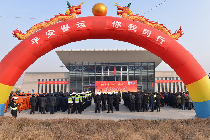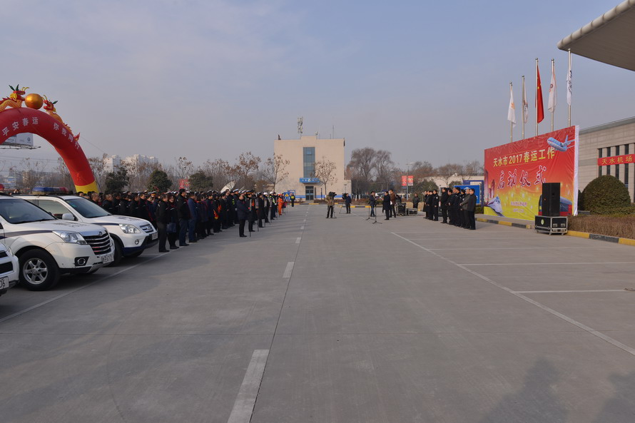 1月13日是全国2017年春运工作启动日,天水市政府在天水机场举办了2017年春运工作启动仪式。上午10时,市委常委、常务副市长赵卫东宣布“天水市2017年春运工作正式启动”,标志着天水公路、铁路、民航、邮政四大运输系统春运工作同时启动。赵卫东就全市做好2017年春运工作提出了具体要求,启动仪式由市政府副秘书长左绍君主持。各县区同时举办2017年春运工作启动仪式。