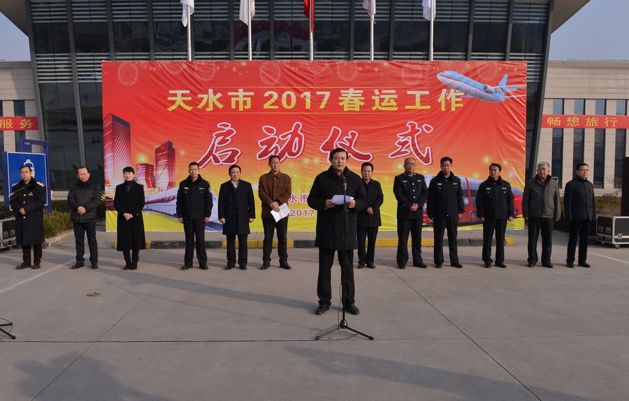 (市委常委、常务副市长赵卫东讲话并宣布天水市2017年春运工作正式启动)