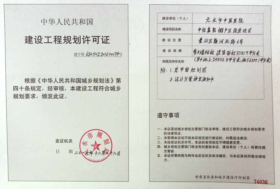 六、中怡嘉苑棚户区改造项目许可证编号为建字第620502201600074号,建设地址为“秦州区藉河北路6号”,建设规模为“剪力墙结构,建筑面积31181.9平方米(其中地上24852.8平方米,地下6329.1平方米)”,建设单位为天水市中医医院,发证日期为2016年12月28日。其他项目。