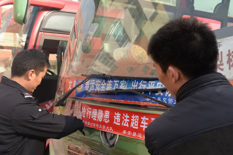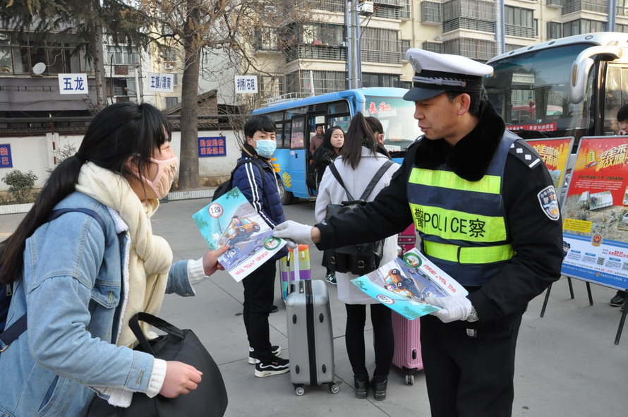 武山县公安局交警大队在洛门汽车站和春运执法服务站设立宣传点,对过往乘客及驾驶人通过散发传单、开展交通安全提示等形式,教育他们不乘超员车、不开超速车。