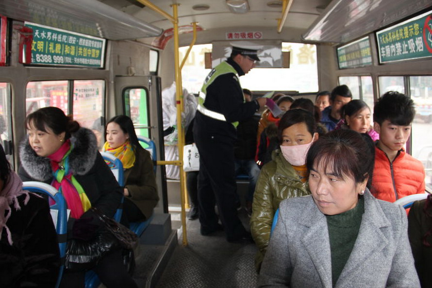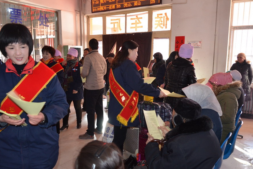 秦安县公安局交警大队在汽车北站邀请县领导共同参与“暖冬行动”志愿者春运服务活动,副县长到待发车辆上向乘客散发了交通安全宣传单,向他们送去了安全出行提示和新春祝愿。志愿者们还帮助乘客推送行李,系安全带,赢得了旅客的高度赞扬。