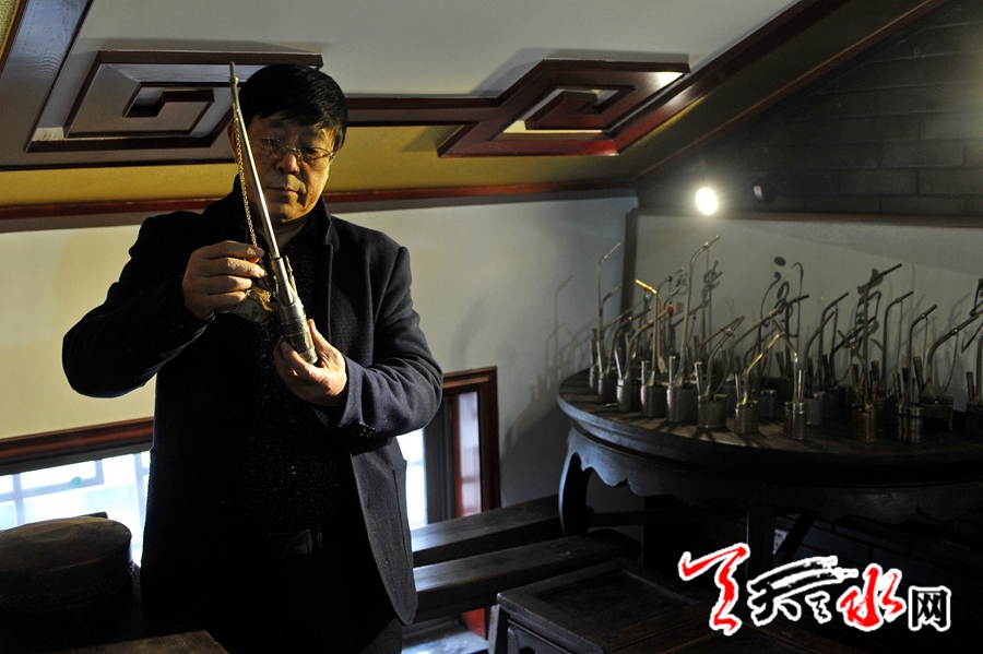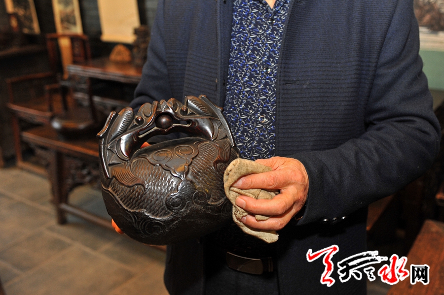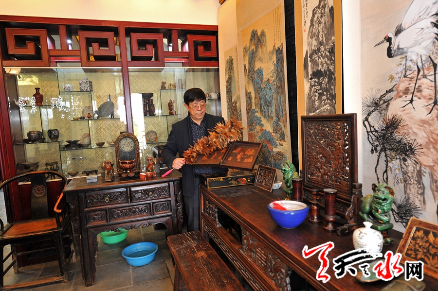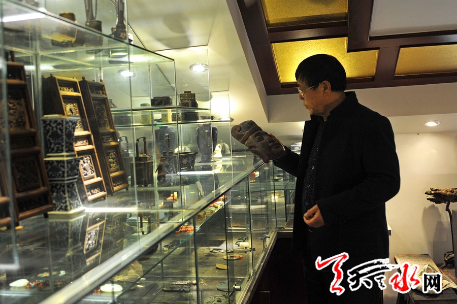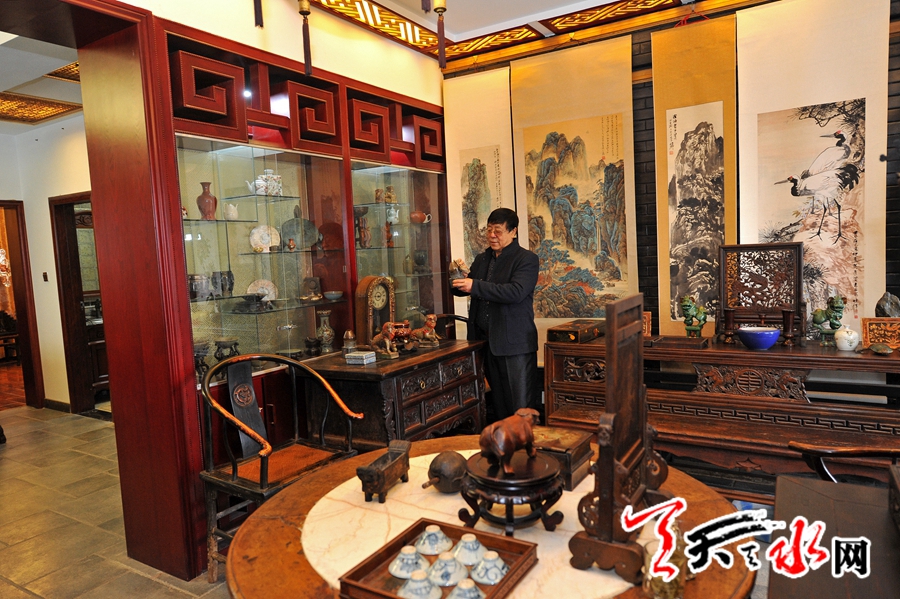 秦州区西关,不知蕴藏了多少老天水记忆。其中一个仿古建筑的小区里,有一座独栋四层小楼,从外观看与它的“邻居”并无二致,但里面的陈设,让人叹为观止。明清家具、高古玉璧、名家书画、绝美精瓷、烟斗铜器、寿山石雕……这里是文物收藏爱好者贺志强的家,也是他的个人博物馆。