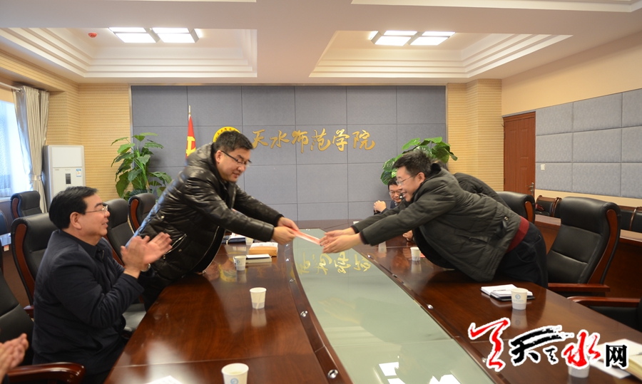 天天天水网讯【记者杨璟】1月16日,天水市委常委、组织部长王正茂前往天水师范学院,看望慰问甘肃省领军人才、享受国务院特殊津贴专家雍际春和星火机床有限责任公司博士后工作站在站博士后杨红平,向他们致以诚挚问候和新春祝福。