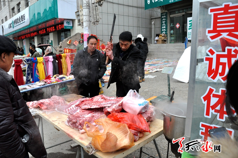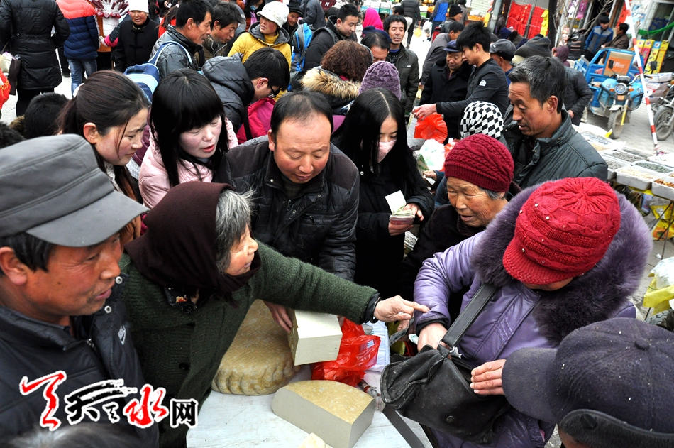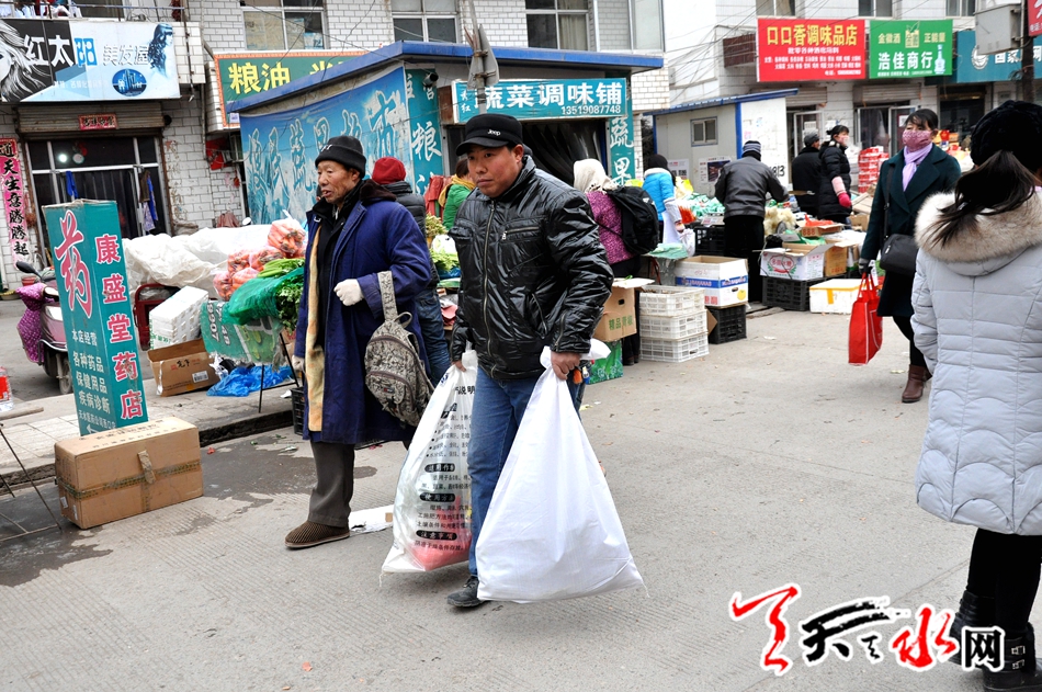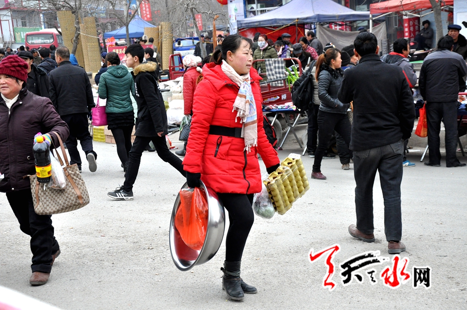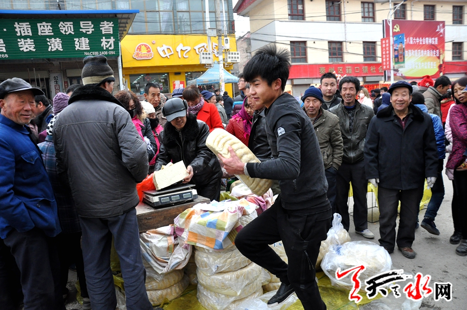 一大早,赶年集的人流便开始聚集,肉摊、菜摊,卖年画的、卖春联的、卖糖果的……各色年货一应俱全,冒着寒冷赶集的人四面八方的蜂拥而至,整个集市显得熙熙攘攘,人潮涌动。在集市上,记者还看到,前来赶集的多位中老年人,他们从这个摊到那个摊,挑选着心仪的年货,赶集的人有推车的,有挑担的,有挎篮子的,还有步行的。