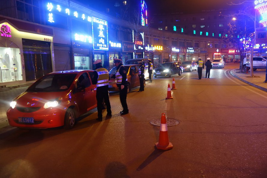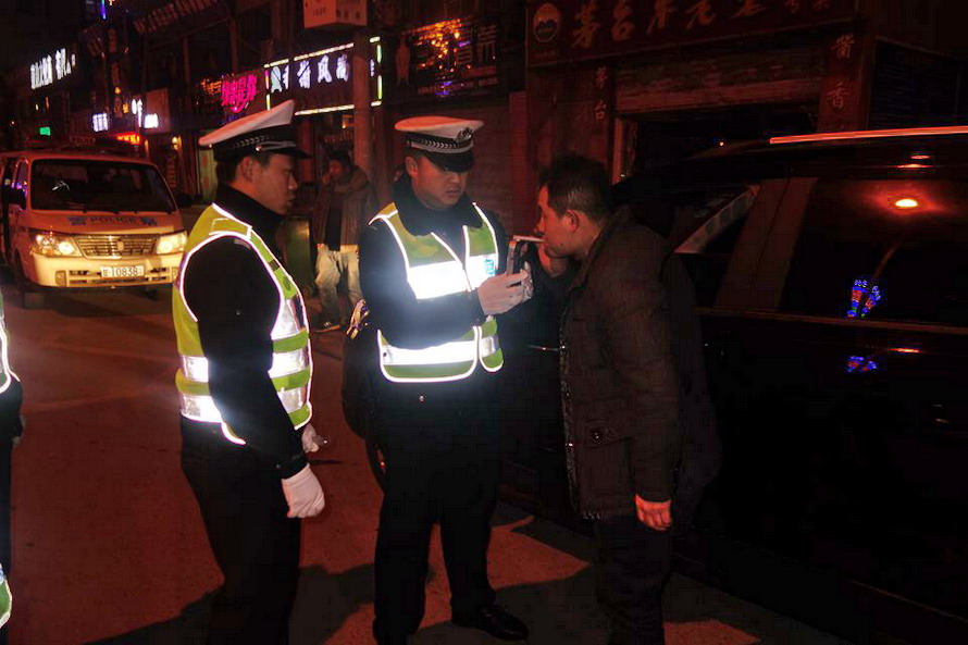 天天天水网讯 为进一步消除道路交通安全隐患,给全市人民喜迎2017年新春佳节创造安全、有序、畅通的道路交通环境,天水公安交警系统结合正在开展的今冬明春交通秩序集中整治行动,于1月20日晚组织开展了以查处酒驾、醉驾为重点的春节前交通安全集中夜查行动。全市公安交警系统通过组织警力在饭店、酒吧、KTV等餐饮娱乐场所周边及辖区重点道路设立临时检查点,采取动态巡逻和定点查处相结合的方式,及时查处酒后驾驶违法行为,将威胁交通安全的隐患消除在萌芽阶段。执勤民警对发现存在酒后驾驶违法行为的车辆驾驶人一律从严惩处,实行“零”容忍,切实形成整治酒驾严查、严管的高压态势。