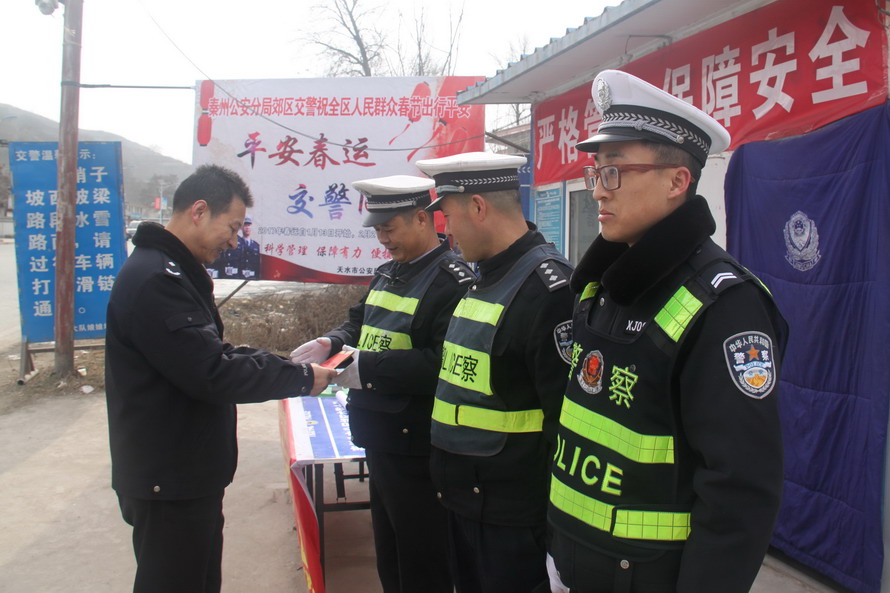 (交警支队政委毛建民到秦州公安分局郊区交警大队徐家店执法服务点慰问春运执勤民警)
