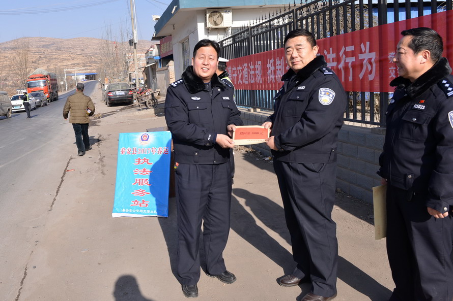 (交警支队副支队长许维正到秦安县公安局交警大队莲花执法服务点慰问春运执勤民警)