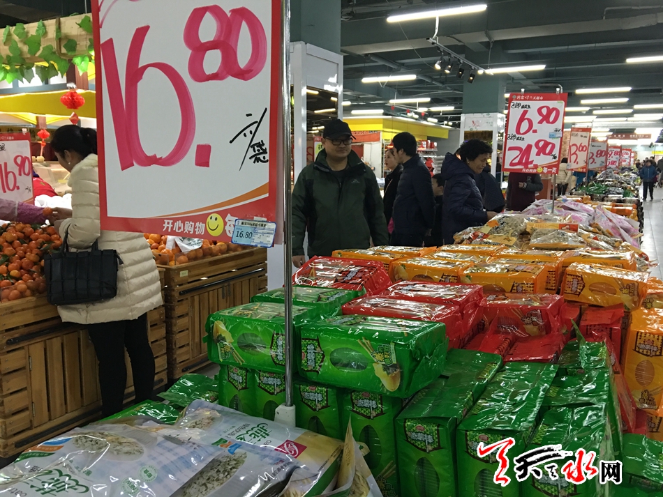 天天天水网讯【记者甄娜】年初二,我市各家超市都人来人往十分热闹,记者采访看到,其中小食品和新鲜蔬菜卖得最好!
