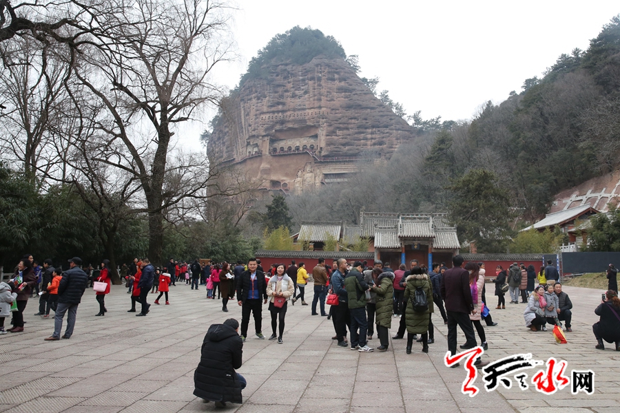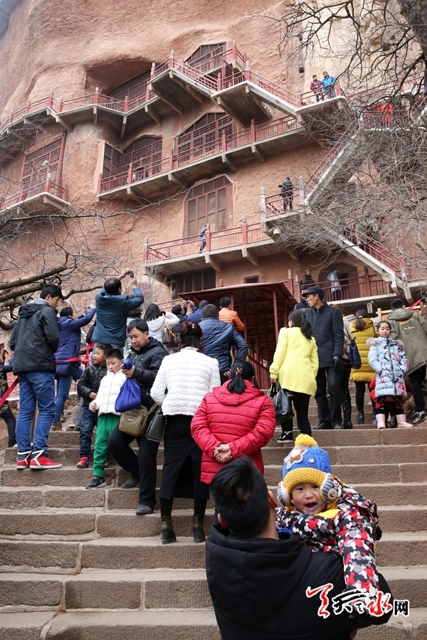 2月1日,游客在麦积山游览。 记者 周文涛 摄