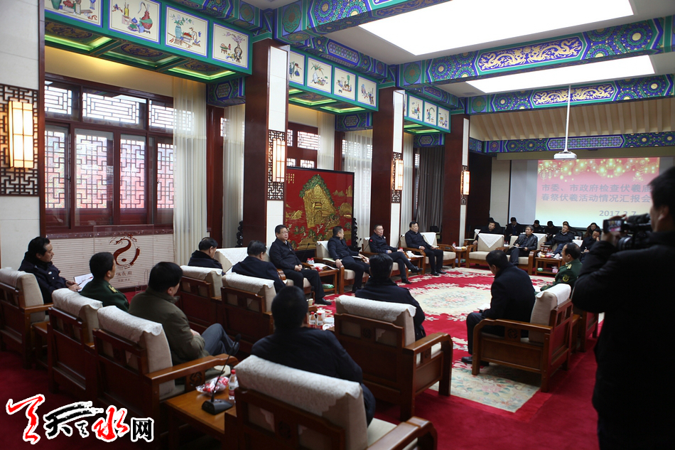 王锐强调,伏羲庙春节文化庙会活动内容丰富、时间长、人员密集,要克服松懈麻痹思想,强化安全意识,全力做好文化庙会期间安全保卫工作。要从细微处入手制定周密应急预案,落实各项安全措施,合理安排警力,做好人员疏导工作,确保庙会活动安全有序、万无一失。市、区两级及相关部门要各司其职,通力协作,加强配合,认真做好社会治安、交通疏导、消防安全及应急处置工作,确保文化庙会各项活动顺利进行;要切实做好群众及游客服务保障和医疗应急保障、食品安全监管等工作,通过周密细致的服务,体现人文关怀,让群众和游客满意;要加强文化庙会各项活动的宣传工作,新闻媒体要充分运用现代技术设备,创新宣传方式,多层次、多角度宣传天水传统文化,让更多的人了解羲皇故里天水。