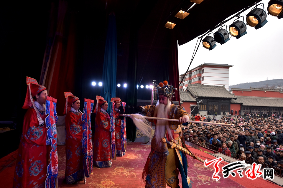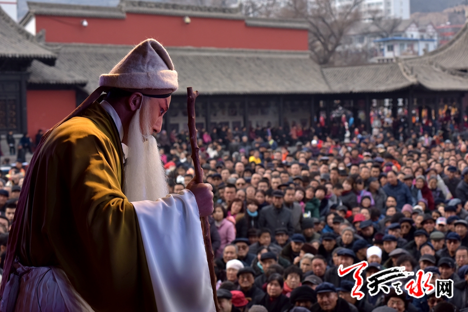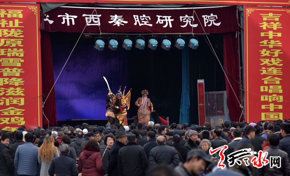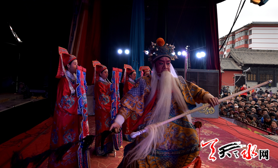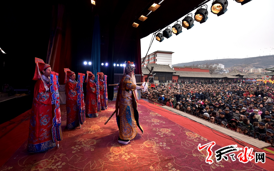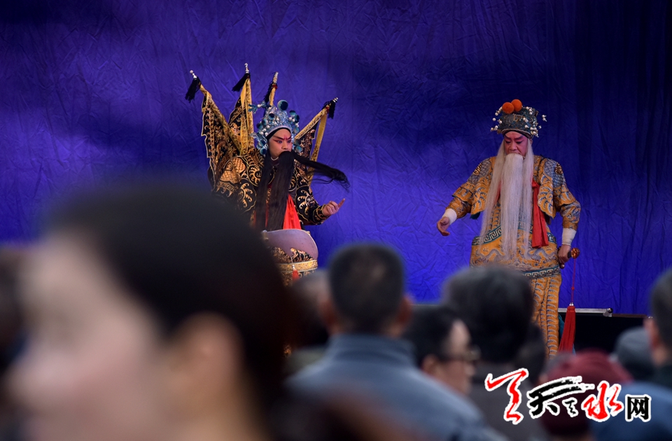 天天天水网讯【记者永德 晓亚 杨旭 闫鑫】2月10(农历正月十四)日下午,吉祥中华—丁酉(2017)年天水伏羲庙春祭伏羲活动秦腔公演进入第二天,当日午场和晚场演出了《白逼宫》、《三娘教子》、《杀驿》、《起解》、《临潼山》 和《黄河阵》,加演了《斩姚琪》。演出当天,天水市民们都纷纷赶到现场,为秦腔演出喝彩。