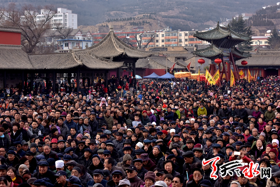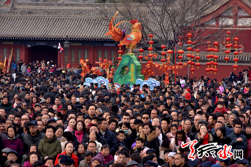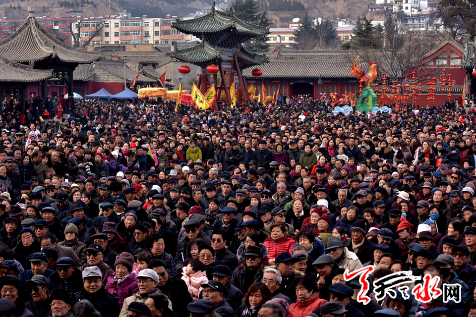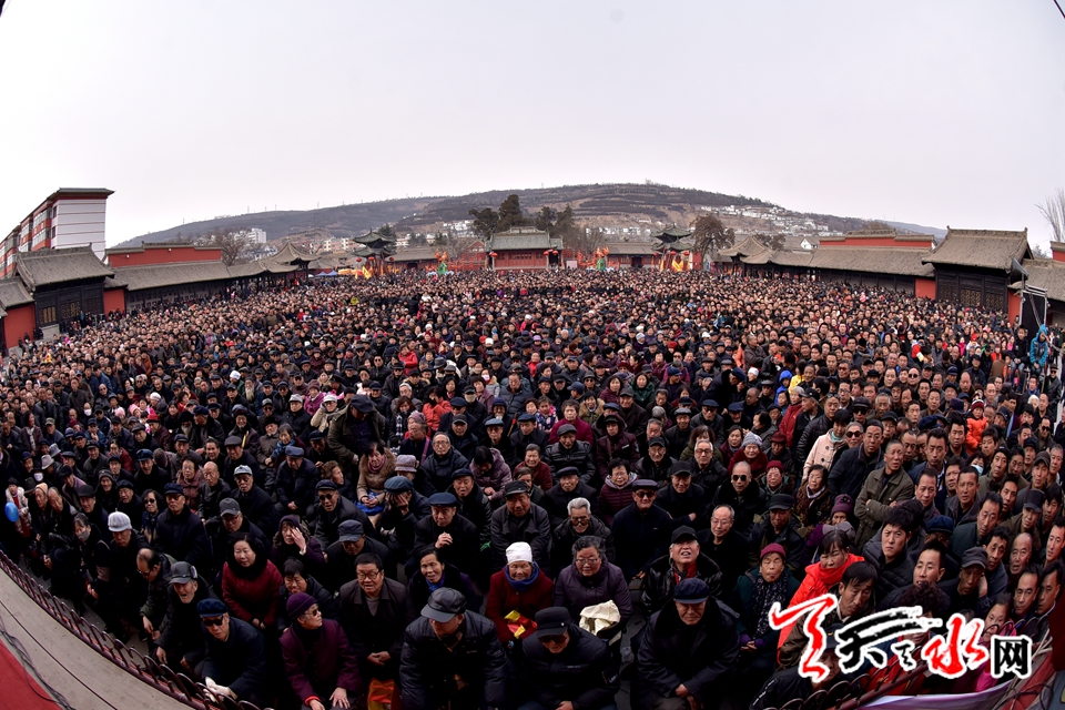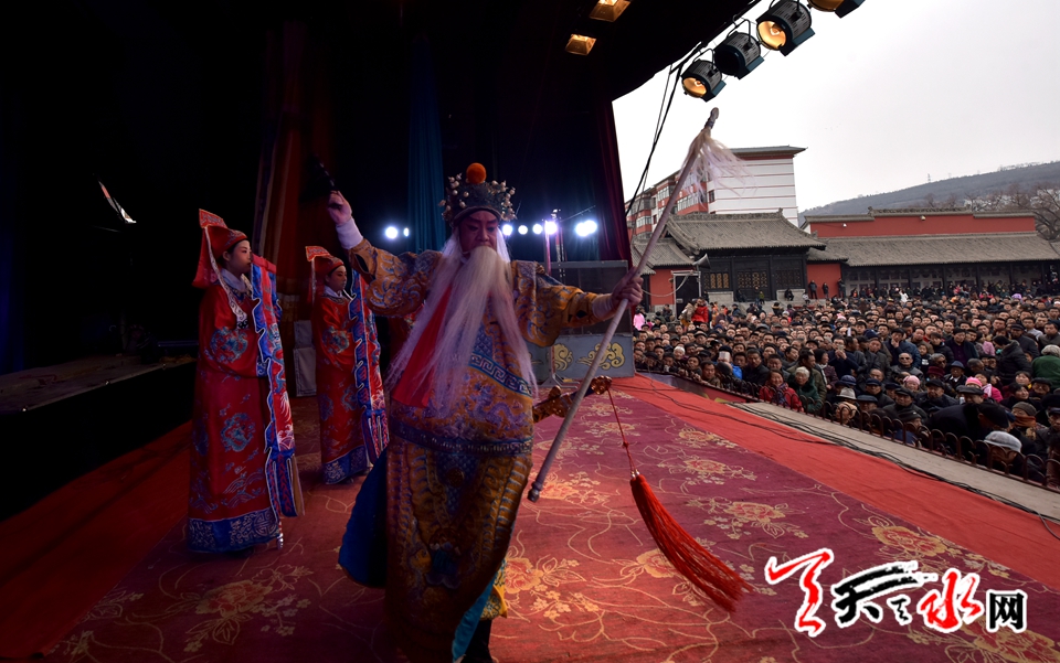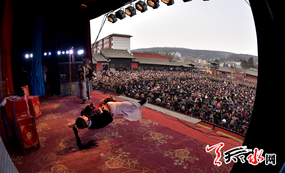 天天天水网讯【记者永德 晓亚 杨旭 闫鑫】2月10(农历正月十四)日下午,吉祥中华—丁酉(2017)年天水伏羲庙春祭伏羲活动秦腔公演进入第二天,当日午场和晚场演出了《白逼宫》、《三娘教子》、《杀驿》、《起解》、《临潼山》 和《黄河阵》,加演了《斩姚琪》。演出当天,天水市民们都纷纷赶到现场,为秦腔演出喝彩。