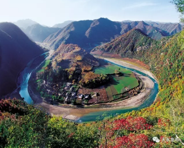 二、山河交响。地处中国版图几何中心的天水静静的站立在秦岭和渭河的交接点上,划出了中国境内黄河和长江两大水系。巍巍秦岭和浩荡的渭水,数亿万年的时空、秦岭和渭水的合力,精心雕琢出陇上江南的美丽景色。南郭寺的古柏以2500多年的树龄,雄踞全国风景名胜区古木之首;天水的古树名木之多在中国仅次于扬州。南山北山,东川西岭,森林茂密,溪涧横流,温泉密布,空气清新,绿意盎然。遍地的流水甘露让天水成为西北最美丽的城市,成为黄土高原上最具魅力的绿色家园、天然氧吧。水灵动,山静止,树呼吸,一动一静之间,创造了天水永恒的生命动力,也孕育了天水永远的诗意。