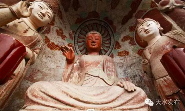 麦积山石窟艺术内容丰富、技艺精湛的佛教艺术,既清新秀丽又浑厚质朴的艺术风格,在北方诸石窟中独树一帜。其洞窟建筑古朴典雅,雕塑逼真传神,壁画生动优美,在美术史上占有重要地位。