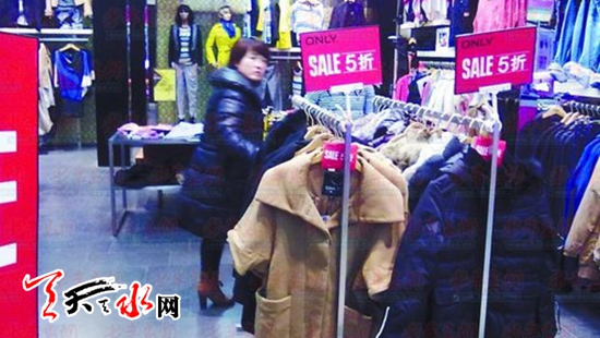2月14日,记者在秦州区大众路一家商场内看到,几乎所有品牌的冬装都已加入到了季末促销的行列中来,“冬装5折”“满500元减100元”等标语随处可见,吸引了不少市民驻足挑选。
