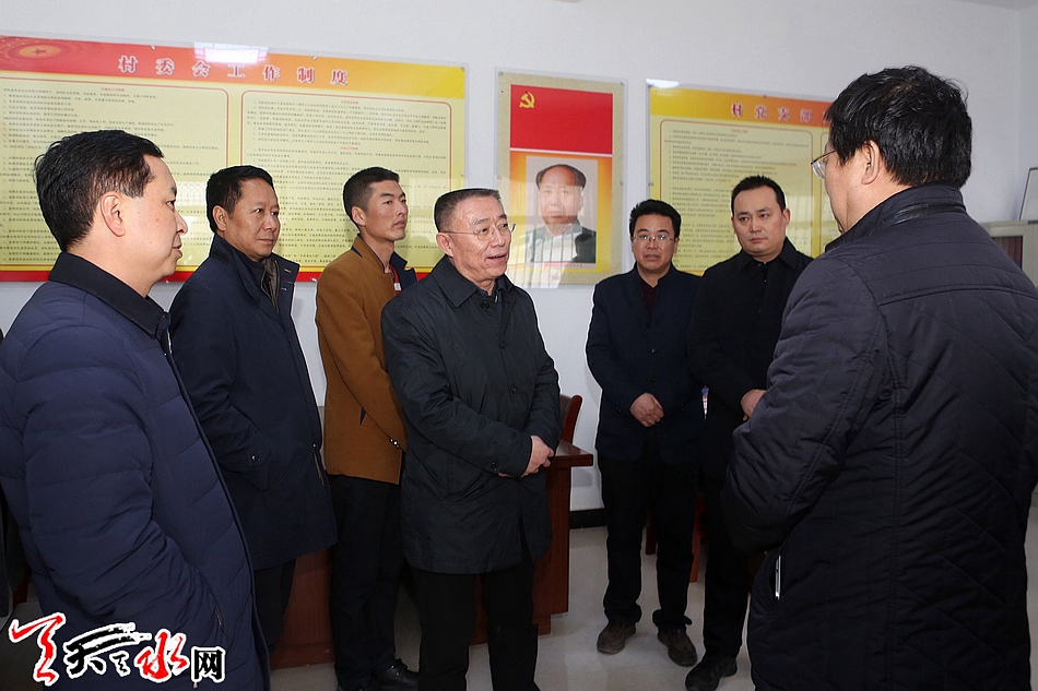 天天天水网讯【记者王晓馨】2月20日,天水市委书记王锐带领市委研究室、市林业局、市扶贫办负责人,来到秦安县兴国、王尹、云山、兴丰、中山等乡镇进行调研。他强调,要深入贯彻党的十八届六中全会精神,扎实推进脱贫攻坚,突出项目建设,完善基础设施,提升特色产业,加强基层党的建设,为决胜全面建成小康社会提供有力保障。