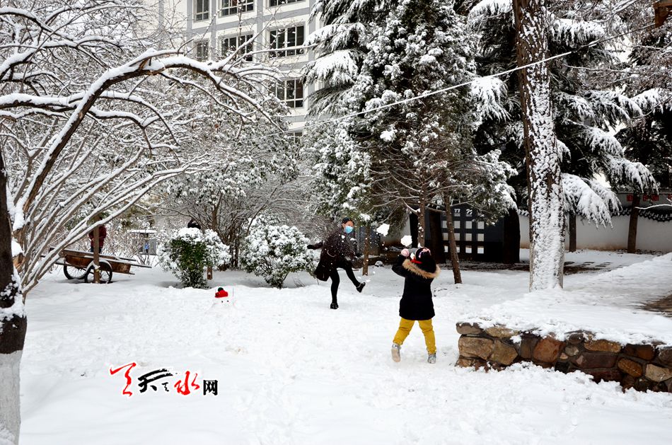 此次降雪不仅缓解了持续干旱,净化了空气,也让渴盼雨雪天气的天水平添了许多乐趣,市民纷纷走出户外踏雪,拍照,堆雪人,欢声笑语响彻城区大街小巷。