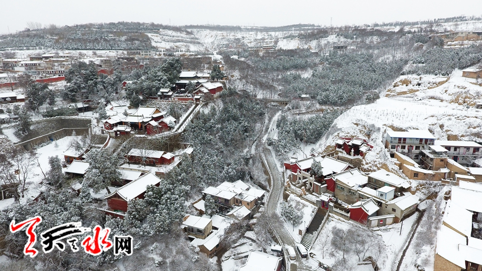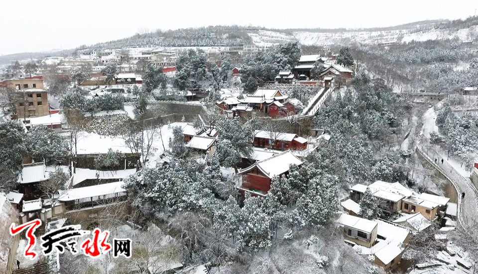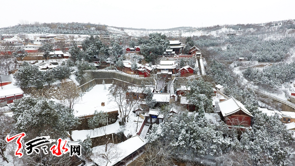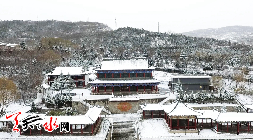 航拍伏羲庙雪景