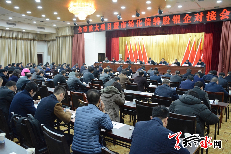 天天天水网讯【记者 赵蔓】2月21日,全市重大项目暨市场化债转股银企对接会在天水迎宾馆召开。市委常委、常务副市长赵卫东在会上强调,全市相关部门要紧紧抓住供给侧结构性改革债转股机遇,深入研究政策规定,加强交流对接,拓宽融资渠道,加快债转股工作落实,推动全市重大建设项目顺利实施。