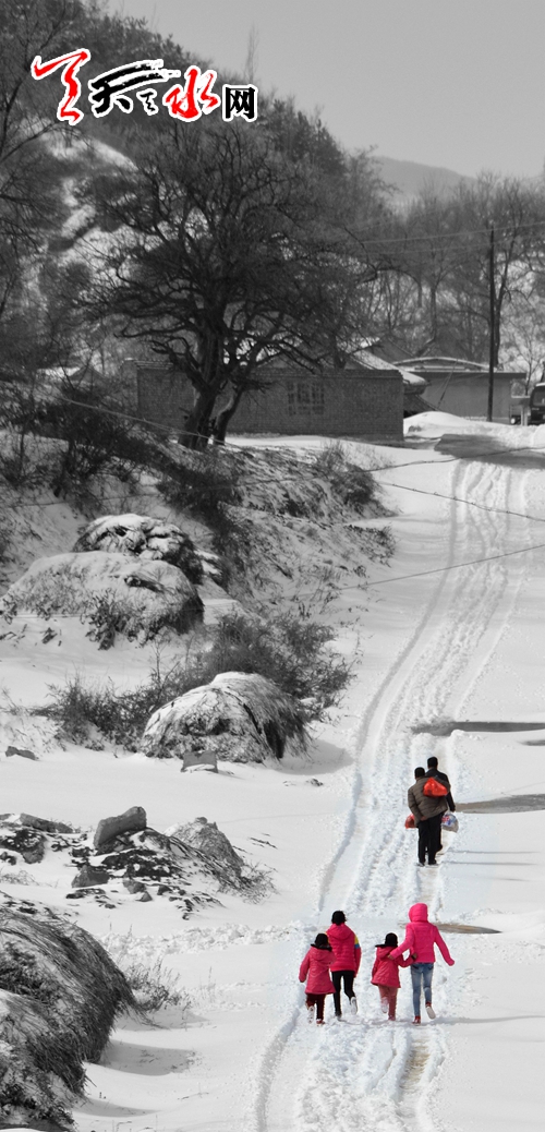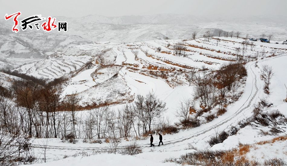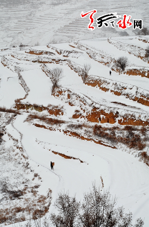 雪封旷野,皓然一色,留下了勤快人的串串脚印。