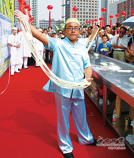 2.马文斌,男,59岁,兰州牛肉面第四代传人,中国面条大师,兰州金鼎鸿宾楼拉面师。40多年来,他一直坚守在牛肉面制作一线,亲身经历了牛肉面行业成长发展的历程,为做大做强兰州牛肉面产业作出了卓越贡献。1991年,他和师傅代表兰州参加由商业部举办的全国美食大赛,为兰州牛肉面捧回国家“金鼎奖”美誉。他先后代表兰州多次参加全国性的饮食比赛,在北京水立方现场演示、在央视热播栏目《舌尖上的中国》纪录片中演绎牛肉拉面技艺,让兰州牛肉拉面蜚声中外。他时时用工匠精神鞭策自己,致力创新、潜心钻研、精益求精,为兰州牛肉面产业发展作出了突出贡献。