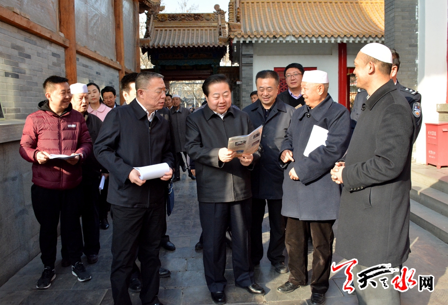 在张家川县回乡风情园、张川镇西关清真寺、秦州区后寨清真寺,马世忠了解了宗教场所基础设施情况,与寺管会成员、教长、阿訇进行了交流。他希望教职人员要坚持宗教与社会主义社会相适应,充分发挥桥梁纽带和凝聚人心的作用,教育引导广大信教群众坚持正确的宗教政策,爱国爱教、同心同行,继续巩固民族团结、宗教和顺的良好局面。