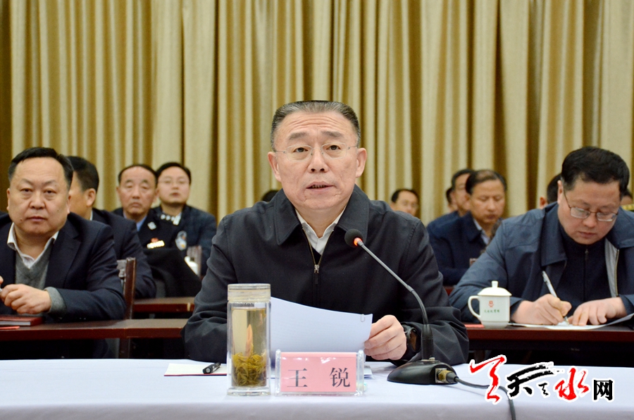 王锐在主持汇报会时表示,天水市委、市政府将进一步加强对政法综治维稳工作的领导,层层传导压力责任,定期分析政法工作面临的形势和任务,及时发现并协调解决政法工作中存在的困难和问题,切实做到守土有责,守土尽责。围绕落实重点工作任务,全力抓好矛盾纠纷排查调处,扎实推进社会治安防控体系建设,深入开展社会稳定风险评估工作,细化工作措施,强化督促检查,认真做好综治、维稳、反邪教等各项工作。持续加强政法队伍建设,推进政法系统“两学一做”学习教育常态化制度化,深入开展“政法队伍建设年”活动,严格执行作风纪律规定和各项警令,以政治过硬、业务过硬、责任过硬、纪律过硬、作风过硬的政治本色,推动中央和省、市委政法工作会议确定的各项任务落到实处。