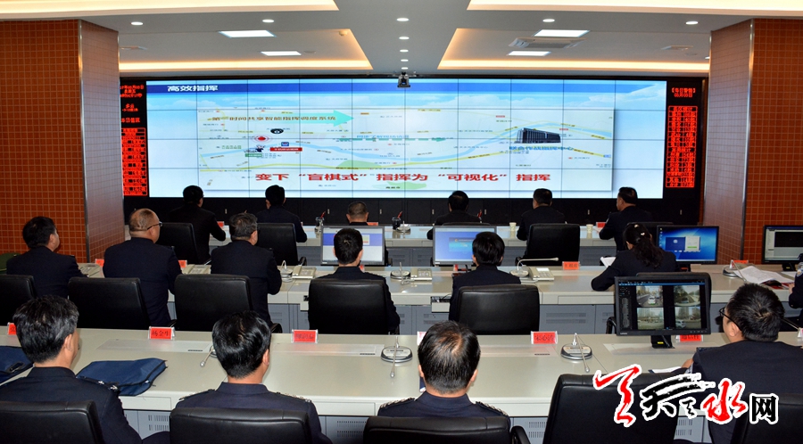 ↑在市公安局指挥中心调研
