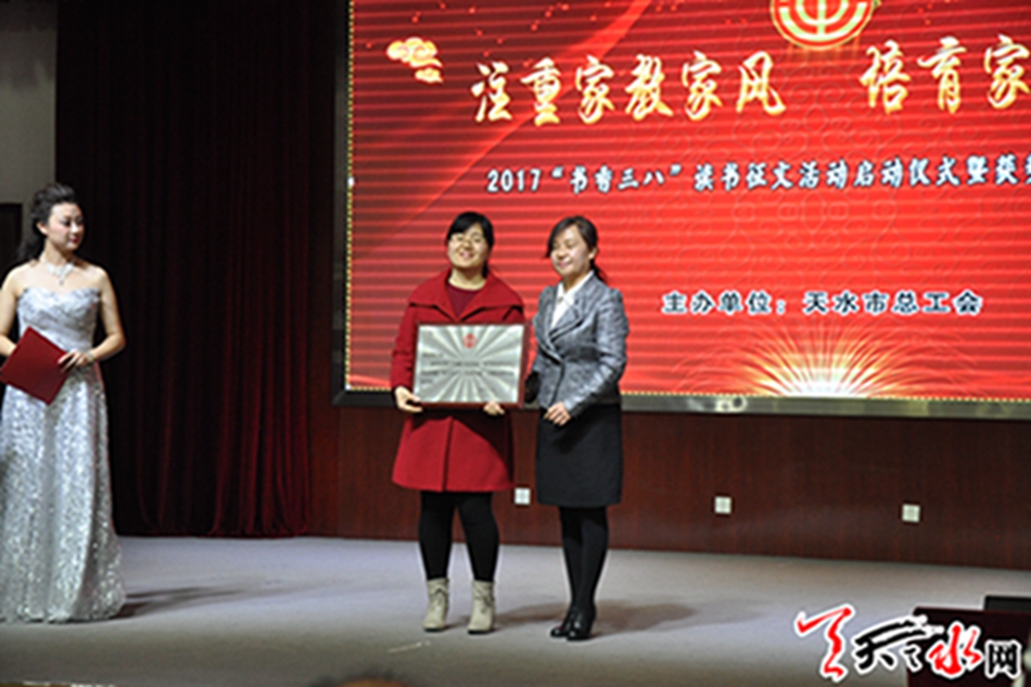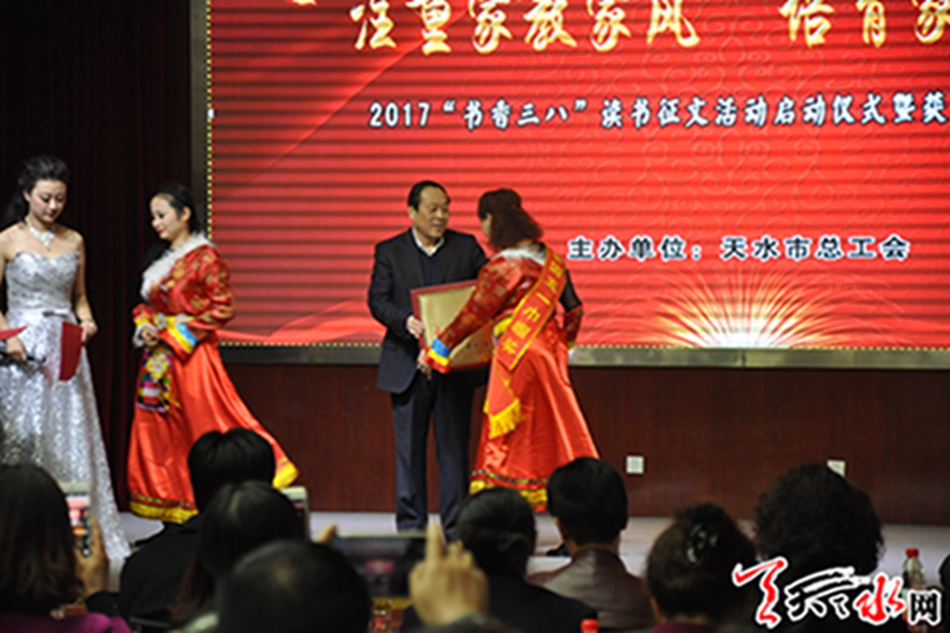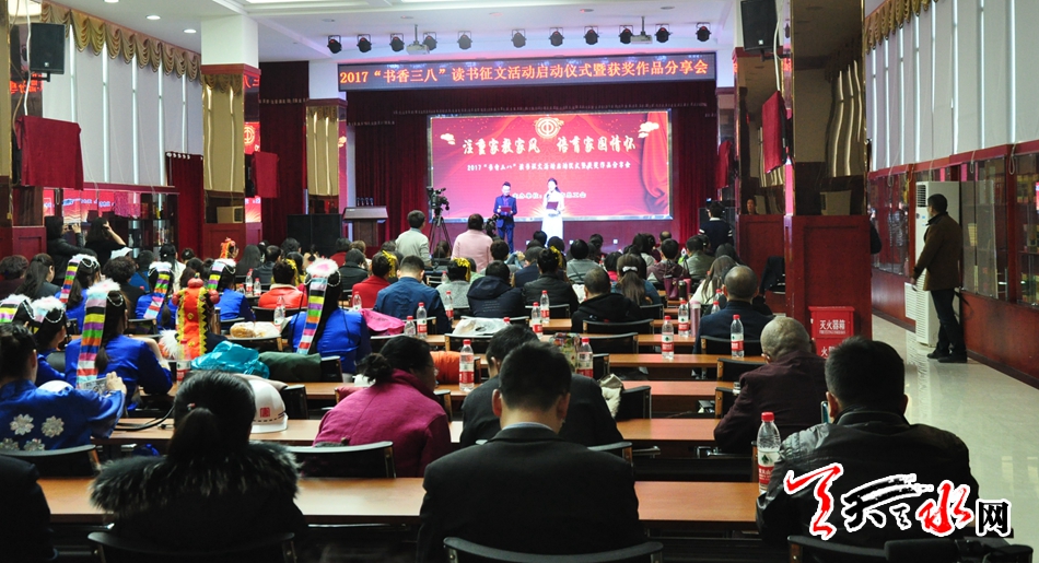 天天天水网讯【记者 刘晓亚】3月3日下午,由天水市总工会主办的2017“书香三八”读书征文活动启动仪式暨获奖作品分享会隆重举行,全市各级女职工委员会主席、女工主任或女工委员、部分企业女职工代表近千人出席了会议。