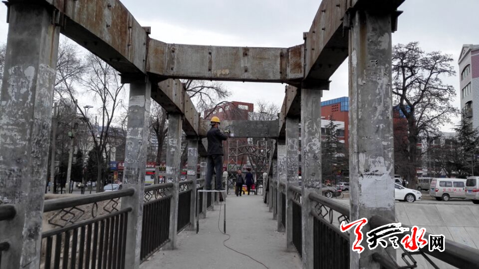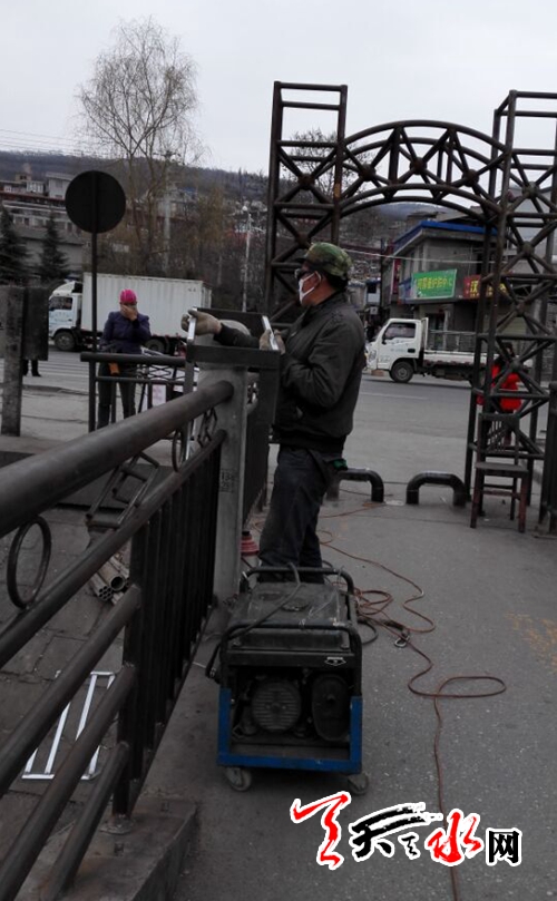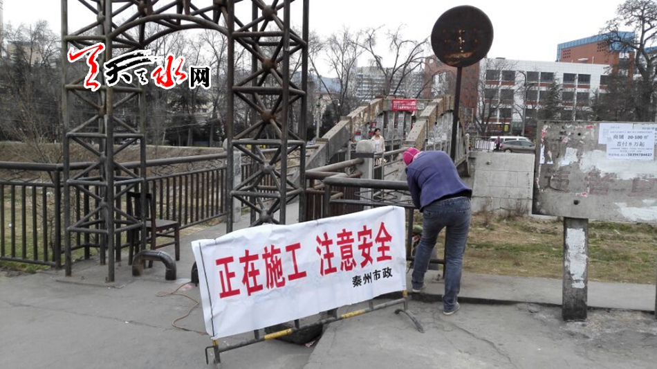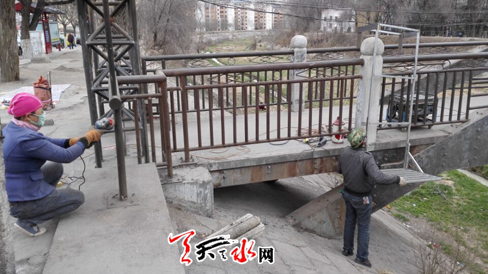 天天天水网4日16时讯【记者 苏中豹】当日下午,秦州区市政工程公司的工作人员正在对位于市五中对面的罗峪河便桥桥位进行除污除锈等清理维修。对于施工给行人造成的不便,工作人员希望通过媒体提请市民给予理解配合,并注意通行安全。