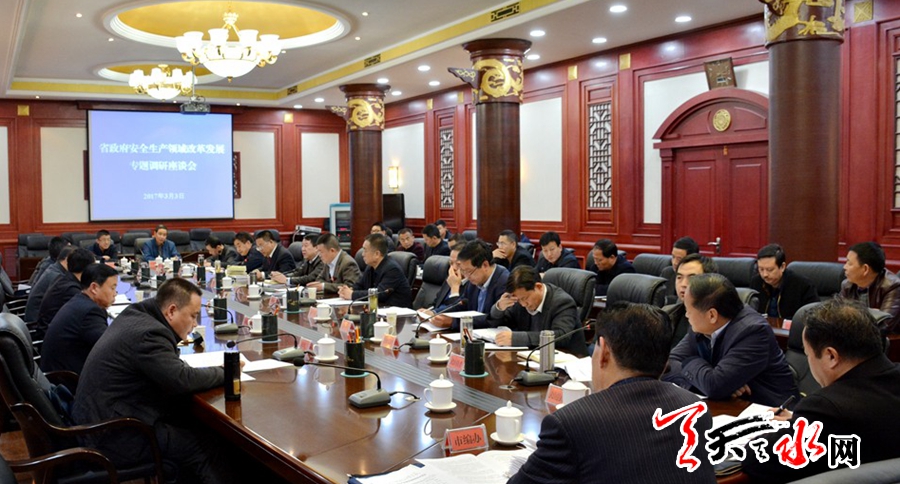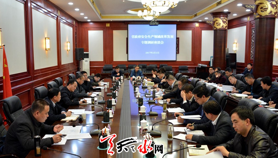 天天天水网讯【见习记者徐媛】3月3日,省政府调研组组长、省安监局副局长王贵玉一行,就我市安全生产领域改革发展情况进行专题调研。市委常委、秘书长、政法委书记蒋晓强主持座谈会,副市长郝文杰汇报了我市有关情况。